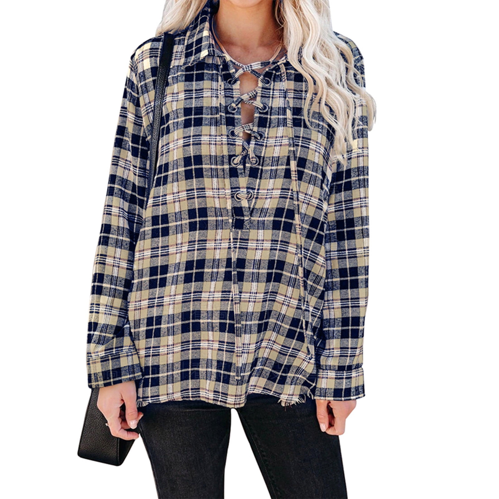 Long Sleeve Bodysuit For Women Womens Long Sleeve Tops Women S Lapel Half Open Placket Wide Loose Fit Trendy Casual Plaid Shirt Blouse Shirts For Women New White Blouse For Women Khaki S